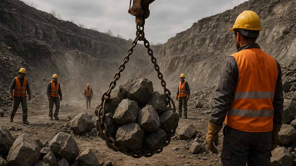 زنجیر حلقوی در معادن برای بلند کردن سنگهای سنگین، جابهجایی تجهیزات، یا مهار ماشینآلات استفاده میشود. مقاومت بالای این زنجیرها در برابر فشار و سایش، آنها را برای محیطهای خشن معدنی ایدهآل میکند.